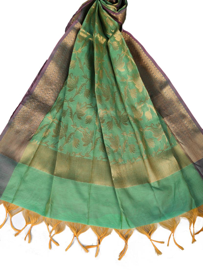 Elegant green dupatta with shimmering Banarasi foil prints.